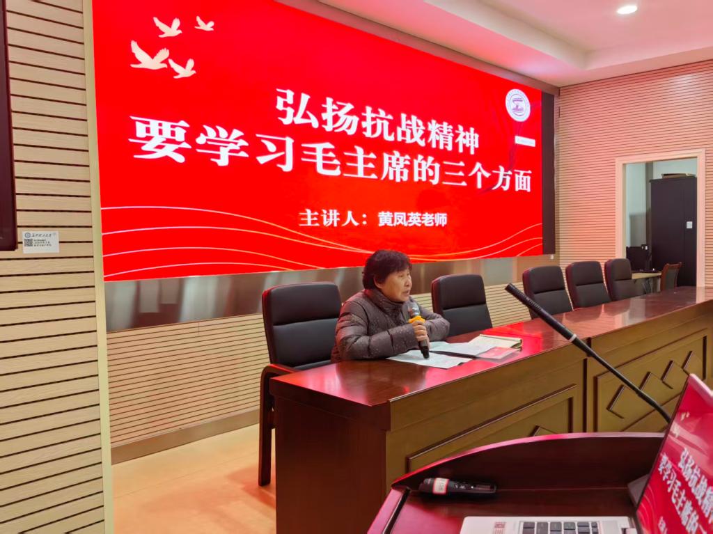 专题分享环节,黄凤英结合抗战精神与青年成长,鼓励同学们将爱国情怀融入学业科研、支部建设与服务同学的实际行动中,做到“心中有信仰、脚下有力量”。