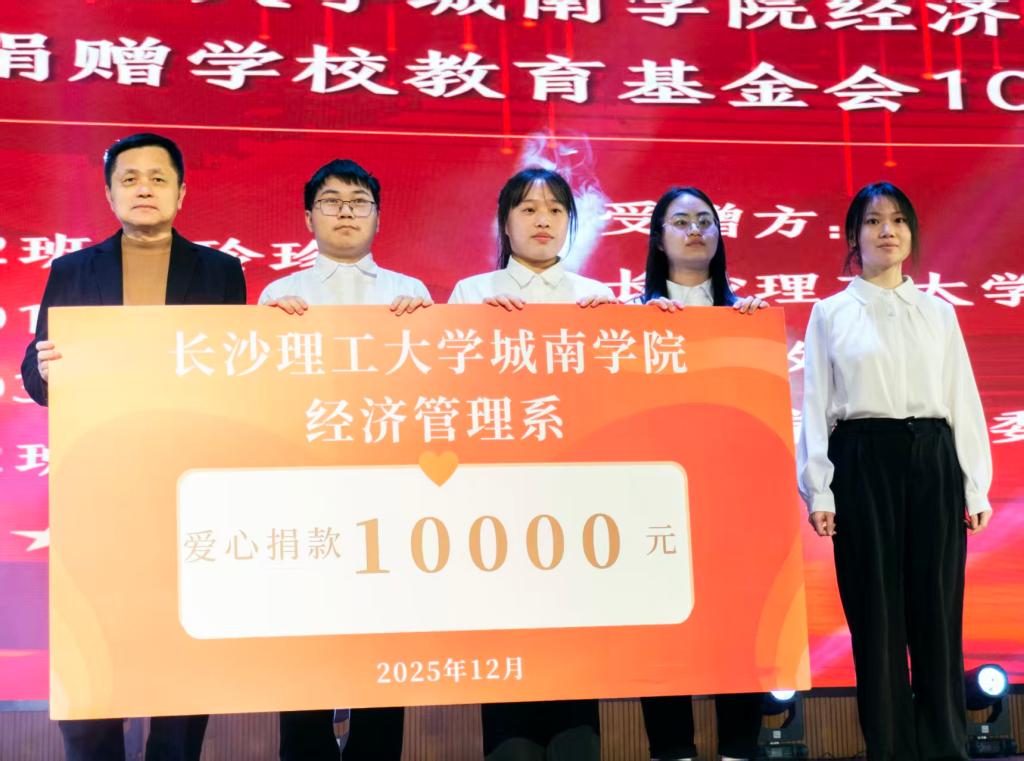 青春有爱,同心同行。晚会中,市营2202班文玲珍、国贸2201班何芳、金融2203班刘艳红、会计2302班吴与同四位同学倾情捐赠奖学金,以点滴善意汇聚暖流,用赤诚之心助力身边同学笃行致远、逐梦成长,这份同窗情暖,尽显青年担当与向善力量。