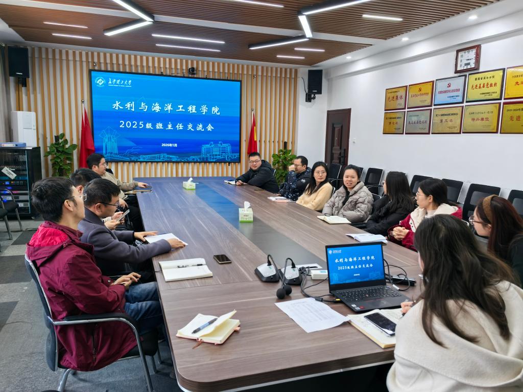 1月13日,水利学院在云塘校区新能源楼1栋420会议室召开2025级班主任工作交流会。会议聚焦2025级学生转专业意向调研、期末总结班会组织安排及新生心理个案干预三项重点工作,开展深入研讨。学工办主任綦丽,年级辅导员王正博、王祎及2025级班主任出席会议。会议由王祎主持。