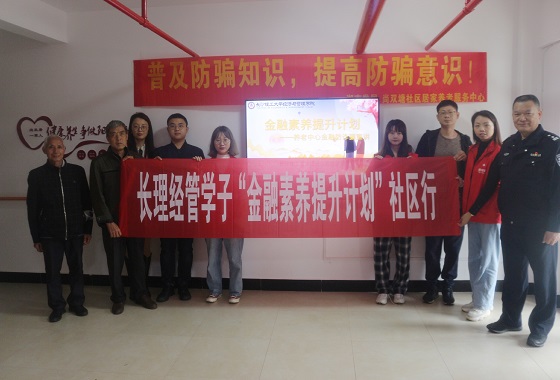 为关爱社区老人,预防金融诈骗,4月27日下午,经管学院“金融素养提升计划”团队成员来到尚双塘社区居家养老服务中心和金盆岭街道天剑社区,向社区老人宣讲金融防诈骗知识,增强广大社区群体的防诈骗意识。