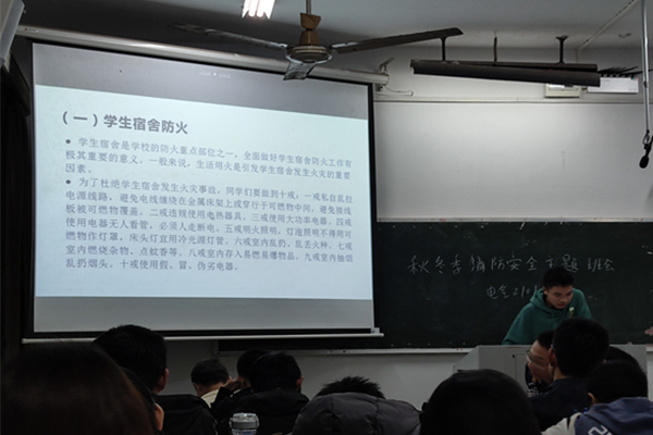 主题班会上,班长通过实例向同学们宣传不重视防范、发生火灾会给生命和财产带来的严重后果,全体同学共同学习消防知识如火场逃生知识、灭火器的使用方法等。在电光火时等学院、班级微媒体平台开展消防知识等专题推送,宣传有关消防法律法规知识等,积极营造安全教育氛围。同时,电气学院在云塘校区开展电动车安全警示教育活动,与会同学通过观看电动车安全隐患警示教育片,切实了解电动车事故危害,并牢记不准违规载人等“十不准”,随后全体同学签署安全使用电动车倡议书,确保安全骑行。