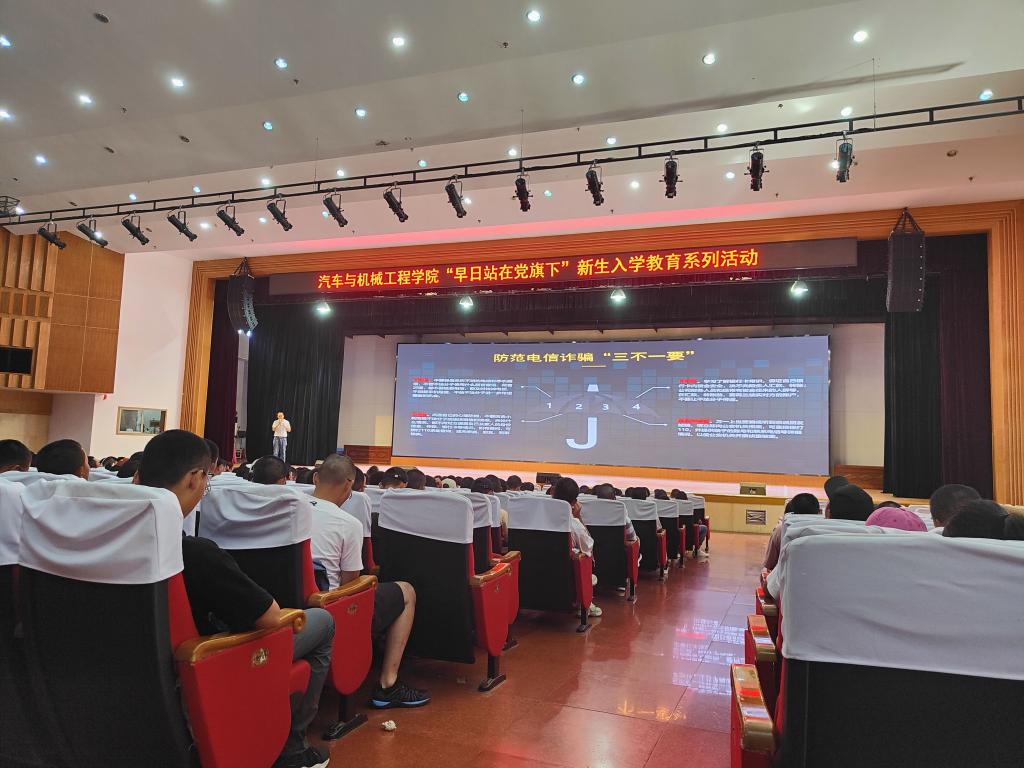9月20日,学院党委副书记唐宏宾以《预防电信诈骗》为主题,通过对中奖诈骗、家人遭遇意外诈骗、亲友急事诈骗、虚假购物诈骗等诈骗案例的分析,引导全体新生紧绷防范之弦,做到不轻信、不转账、不透露、及时报警,远离诈骗之害。