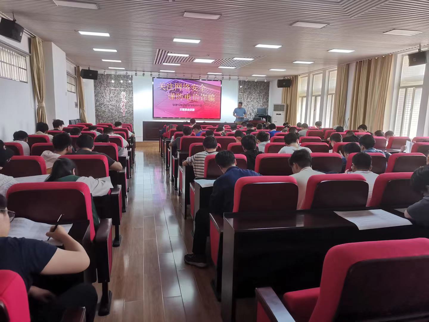 5月6日下午,物电学院在理科楼B413召开2017级防诈骗安全教育大会,大会由2017级辅导员赵俊程主讲,2017级全体本科生参加。