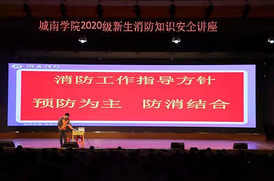 为增强大学生的消防安全意识,12月1日下午,湘安消防陈广教官应邀在五教大礼堂为城南学院全体20级新生主讲消防知识。