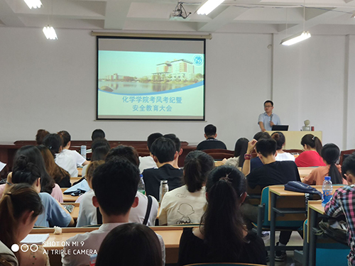 6月3日,化学学院于工三A-320举办考风考纪暨安全教育大会,学院党委副书记汪功伟、学工办王彪,16、17、18级各班学委、团支书及班长参加会议。