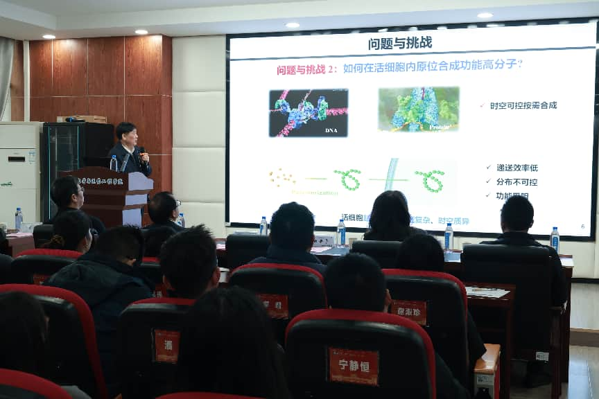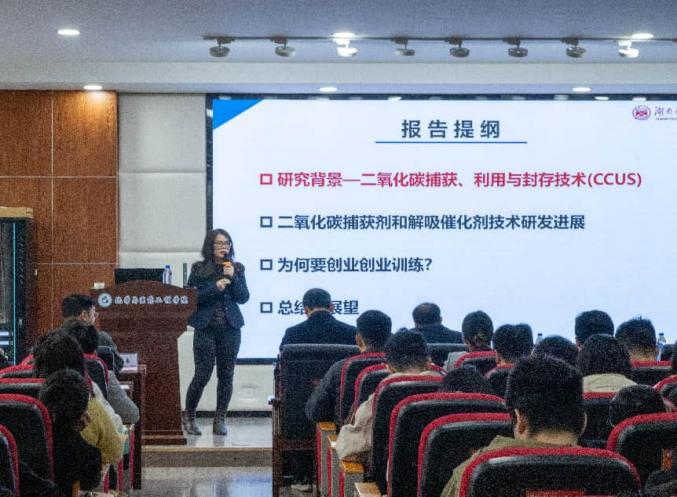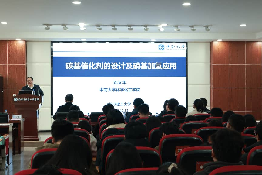 主旨报告环节,杨荣华教授通过精准可控的高分子合成策略,构建具备特定识别与信号放大功能的高分子探针,实现对核酸、蛋白质等生物靶标的高灵敏、高选择性检测;刘又年教授通过精准调控碳载体缺陷与金属活性中心相互作用,构筑出高分散、高稳定碳基加氢催化剂,实现温和条件下芳硝基、CO2等高效选择性加氢转化,为绿色化工与可再生能源存储提供关键催化材料平台与底层创新;高红霞教授围绕燃煤电厂低分压CO2,设计筛选高效胺基吸收剂,通过分子结构调控与工艺耦合,实现低能耗、高循环负荷捕集。三位教授的学术见解引起了在场师生的强烈共鸣。