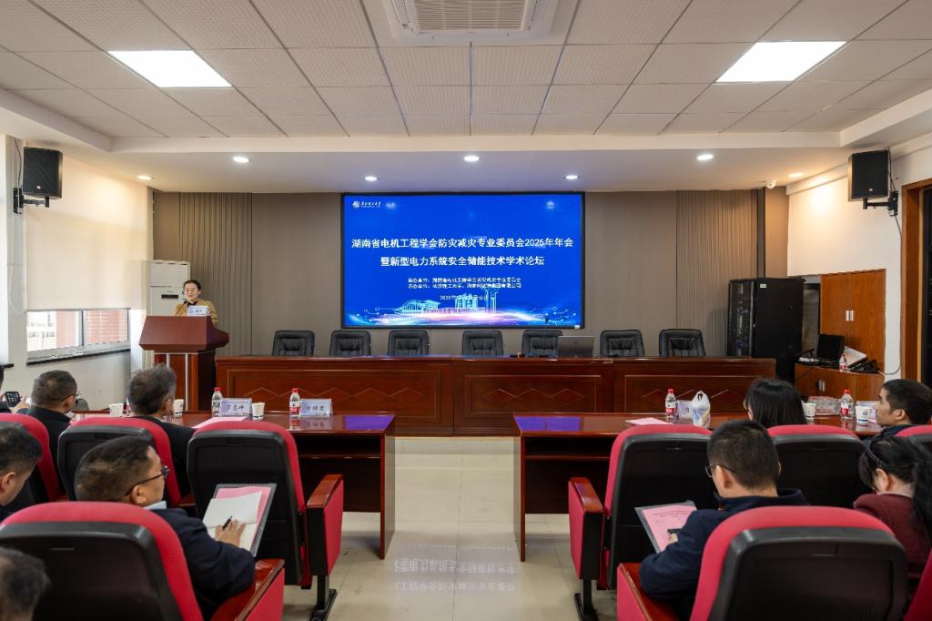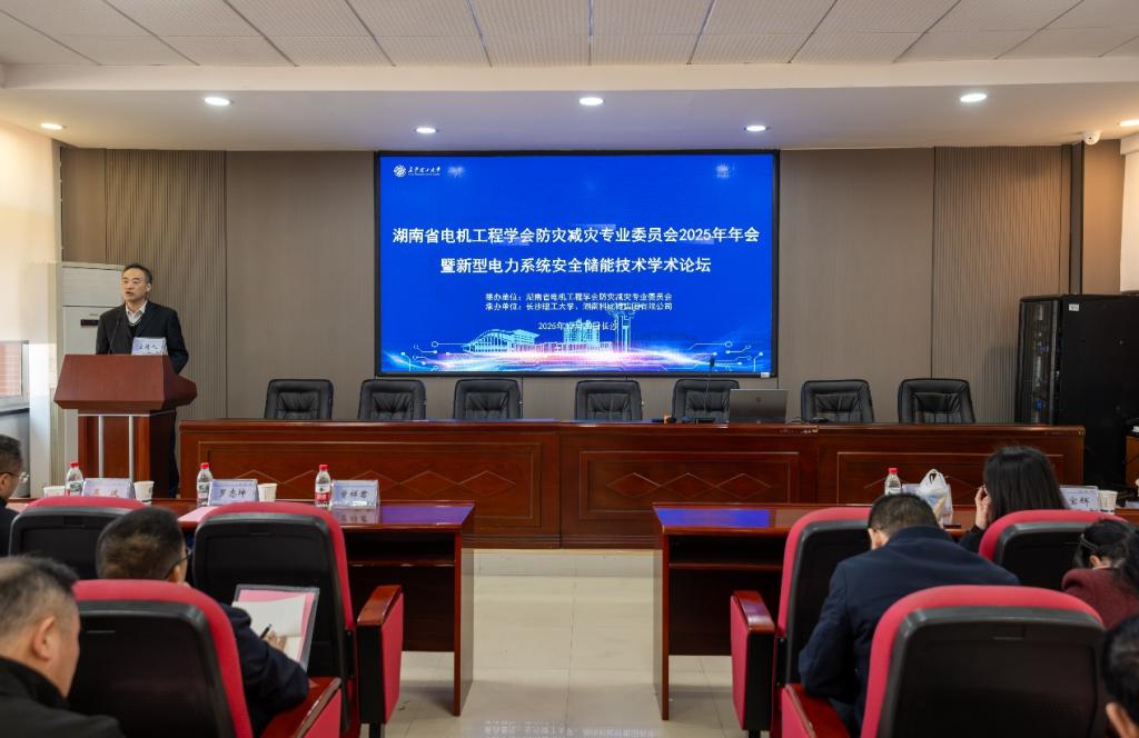 12月20日,由电气学院承办的“湖南省电机工程学会防灾减灾专业委员会2025年年会暨新型电力系统安全储能技术学术论坛”在云塘校区举行。本次活动聚焦新型电力系统防灾减灾与安全储能技术核心议题,旨在搭建行业高水平学术交流平台,推动技术创新与产学研深度融合。开幕环节由蒋正龙主持。