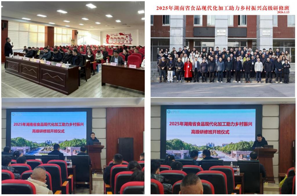 为培养一批掌握食品现代加工技术、精通产业链管理、熟悉政策对接且具备创新能力的食品行业复合型专业技术人才,推动我省乡村食品产业升级与乡村振兴深度融合,1月12日至16日,由湖南省人力资源和社会保障厅主办、食品与生物工程学院承办的“2025年湖南省食品现代化加工助力乡村振兴高级研修班”在长沙顺利开班。全省80余位知名食品企业主要负责人、技术骨干及科研院所专业技术人员参加了为期五天的集中培训。