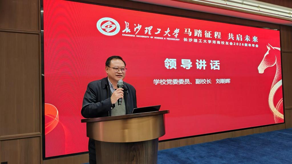马踏征程,共启未来。124日,我校河南校友会2026年新年年会暨智能化低碳建养技术论坛在许昌迎宾馆举行。校党委委员、副校长刘朝晖,河南省公路学会首席专家张全林,理事长朱理平,原河南省交通运输厅一级巡视员李强,学会副理事长王春江出席,学校校友中心、交通学院等单位负责人及在豫校友、校促会会员共160余人参加活动。