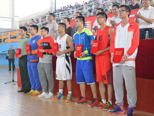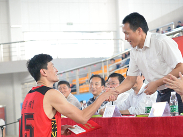 在热烈的掌声中,主席台就坐的领导和嘉宾为获奖代表队和获奖运动员颁奖,余伟良随后宣布本届篮球联赛正式闭幕。