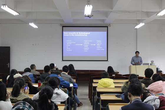 11月14日下午,天津科技大学博士生导师、酶高效表达国家工程实验室副主任王正祥教授应邀来我院进行学术交流访问。在云塘校区工科三号楼A-320会议室,王教授做了题为“酶与生物加工Enzyme & Bioprocessing”的学术报告,报告会由化学与生物工程学院党委书记程云辉教授主持,生物工程、食品可逊于工程等相关学科的教师、研究生及本科生100余人参加了此次学术交流活动。