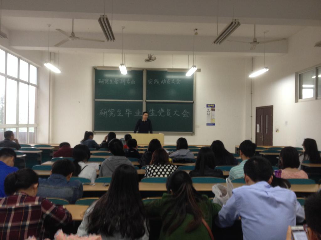 会上,周巍老师首先对“毕业生党员如何正确转出组织关系”进行了详细的阐述,重点讲了党员组织关系转移的重要性及转移的程序、党员档案和学生人事档案的区别。强调要认真填报信息,确保所填信息的准确性;要及时转出组织关系并及时将回执单返回等等。随后周巍老师对即将离校的全体研究生毕业生党员提出了几点要求和希望。一是要带头认真完成毕业设计论文及答辩;二是要带头遵守各项规章制度,在寝室卫生、仪容仪表、按时归寝等方面发挥表率作用;三是要带头积极参加毕业前的各项活动,如爱心捐赠、毕业生晚会、文明离校班会、毕业典礼等;四是要带头安全文明离校,对身边同学的不良行为要及时制止并及时和老师沟通,充分发挥模范带头作用,不做有损大学生形象和党员形象的事。