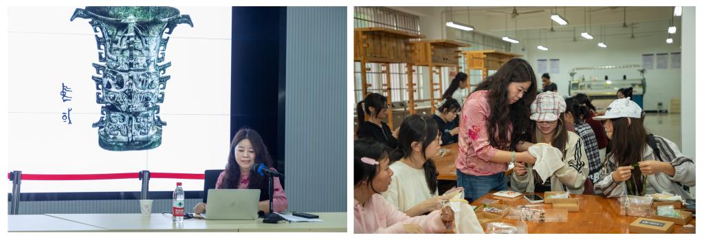 讲座中,刘雅老师从湘绣历史脉络入手,围绕刺绣工具、工艺流程,手绣与机绣、单面绣与双面绣的区别,以及中国古代民间刺绣与宫廷刺绣的差异等内容展开讲解。介绍了中国四大名绣和刺绣工艺特点及中外刺绣差异,并通过作品展示解析传统工艺与现代设计的融合路径。