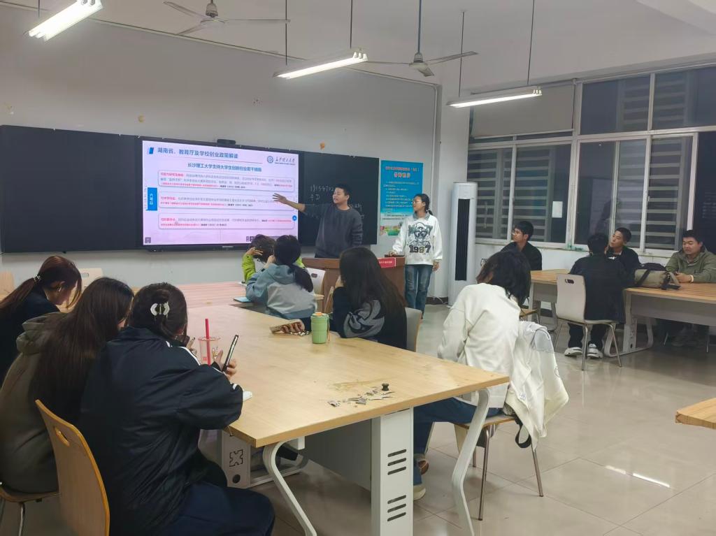 各班主持人解读了《湖南省大力支持大学生创业若干政策措施》的核心内容—“七个一”具体举措,让同学们清晰了解湖南省在创业场地、资金扶持、导师指导、培训体系、服务保障等方面为大学生创业者提供的全方位、立体化支持,坚定了同学们在湘创业的信心。