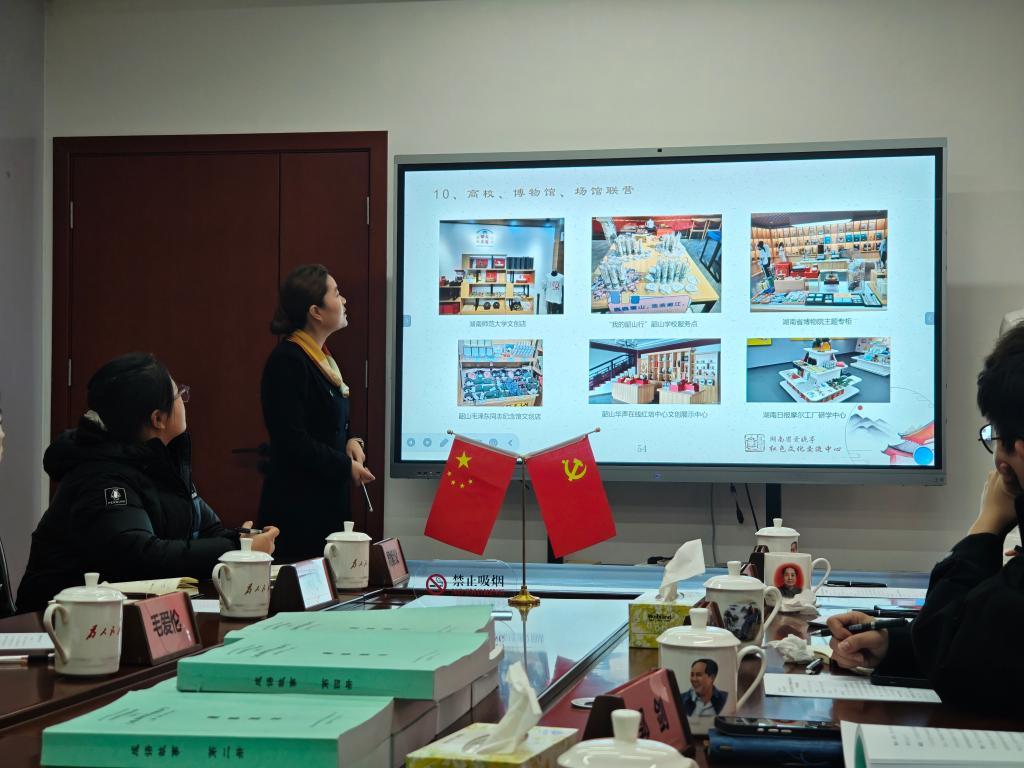 座谈会上,姚会长首先介绍了交流中心的发展定位与核心业务。作为深耕红色文化传播的专业机构,中心立足湖湘红色资源优势,在党史学习教育、红色文化创意开发、红色研学实践等领域成果丰硕,具备丰富的行业资源与实践平台。随后,郭书记详细介绍了学院的学科建设、师资力量、人才培养特色及毕业生就业情况。她表示,学院始终坚持“以赛促学、以产促教”,聚焦数字媒体艺术、视觉传达设计等优势专业,培养了大批兼具创意能力与实践素养的复合型设计人才,期待与中心搭建深度合作桥梁。