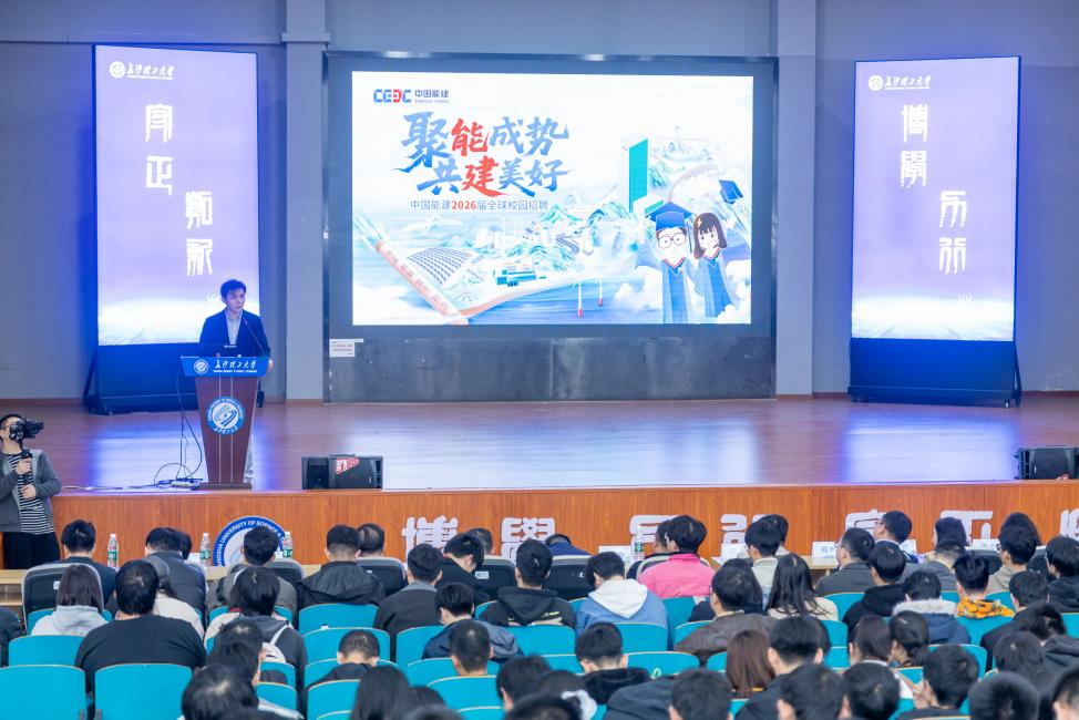 11月10日下午,“聚能成势,共建美好”中国能建2026届全球校园招聘在我校云塘校区学生活动中心科技报告厅顺利举行。