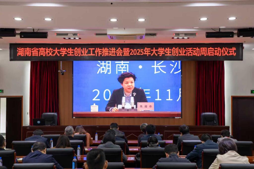 1112日,湖南省高校大学生创业工作推进会暨2025年大学生创业活动周启动仪式在长沙召开。省委常委、常务副省长张迎春出席会议并讲话,省委副秘书长王学武主持会议,省教育厅党组书记、厅长高山通报相关工作。
