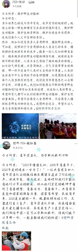 本次活动主题紧贴社会时事,以疫情为打卡内容的载体,以战疫中的事例作为教育的素材,促使同学们主动思考、主动讨论,在了解热点问题的同时感悟新时代雷锋精神的传承。