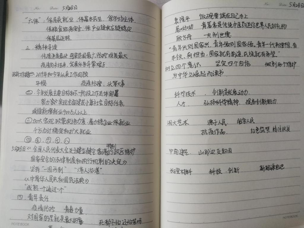 “创新是本次会议代表们热议的话题,是引领发展的第一动力,我们要高度重视创新型人才的培养,在育人的过程中弘扬科学精神、传播科学思想、提升创新能力”,国产a视频免费观看不卡材料学院党总支副书记唐青从科技强国的视角着重强调了学生创新意识和能力的培养。湘潭大学艺术学院党总支副书记刘行解读了“人民至上,生命至上”的观点,她指出艺术来源于人民,就要走进人民,服务人民,通过艺术助力国家发展,满足人民需求。 老师们的导学引起了同学们的热烈讨论,湘潭大学艺术学院的同学们从艺术生的发展角度谈论了艺术生如何服务于人民需要,服务于国家需求,服务于社会进步。国产a视频免费观看不卡材料学院的学生代表何张龙分享了自己对科技报国的理解,他认为材料专业的学生要以政策为灯,指引前行方向、以科技之力,造就国家强盛、以青春之名,书写时代华章。中南大学卞潇则分享了自己对李克强总理在政府工作报告中“两新一重”的理解。