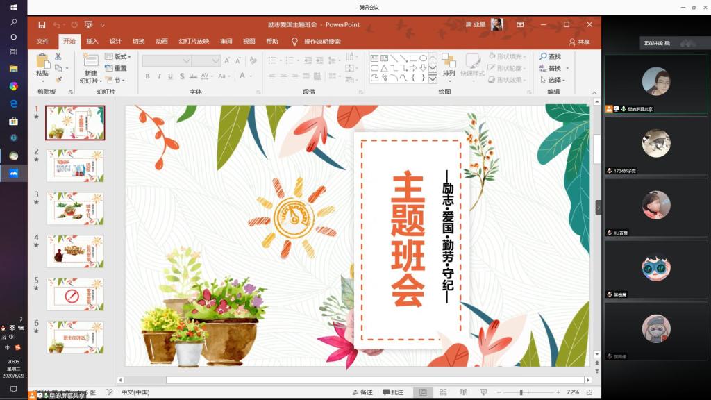 近日,材料学院组织各班依托线上平台召开“励志、爱国、勤劳、守纪”主题班会,各班班主任、年级辅导员和17、18、19级全体学生参与活动。