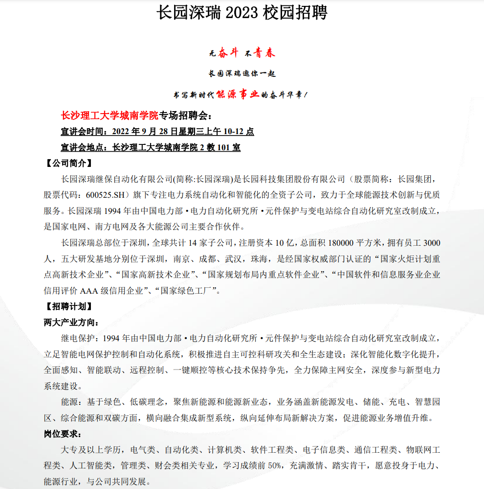 长园深瑞2023校园招聘
