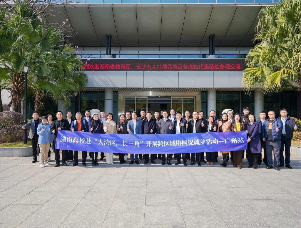 活动首日,朱广峰出席湖南高校“大湾区、长三角”跨区域协同促就业座谈会,探讨区域人才合作新模式。随后参访南方测绘集团,围绕技术研发攻关与应用型人才培养展开交流。