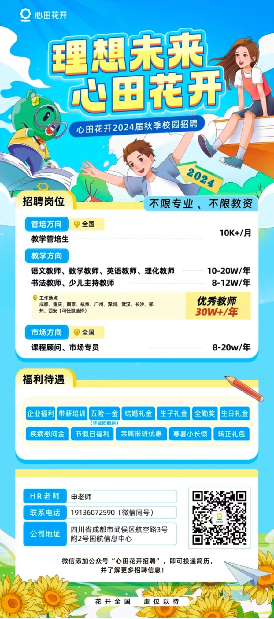 公司各业务线快速发展,诚招优秀应届毕业生,全国十余城可供选择,理想未来,心田花开!