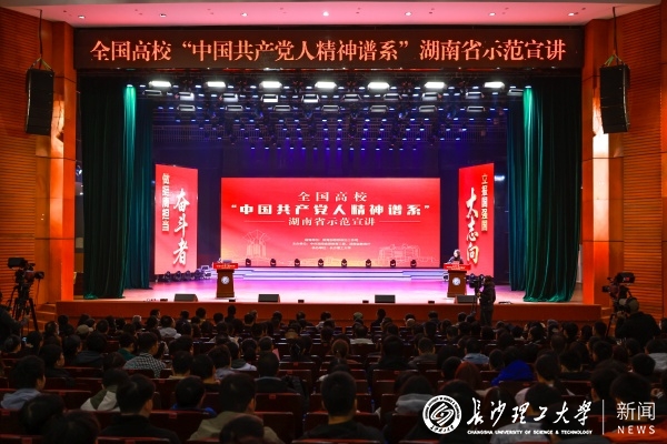 12月5日上午,全国高校“中国共产党人精神谱系”湖南省示范宣讲在我校举行。本次活动以“立报国强国大志向 做挺膺担当奋斗者”为主题,由教育部思想政治工作司指导,中共湖南省委教育工委、湖南省教育厅主办。活动主会场设在我校云塘校区大会堂,全省各高校设立分会场,6万余名师生通过湖南省教育系统视频会议系统同步实时收看。