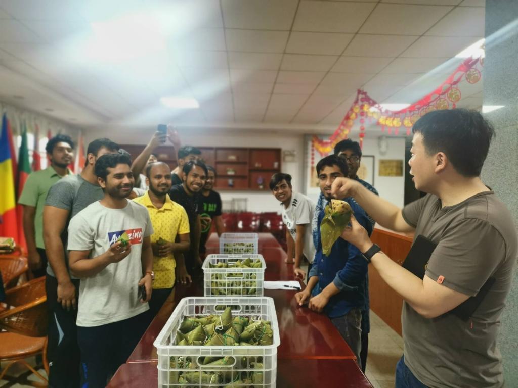 为了使我校来华留学生们体验端午民俗文化,感受中华民族传统,促进留学生“知华友华”教育,6月6日下午,国际学院在留学生公寓汉语角举行了端午节慰问活动。国际学院院长陈瑜、副院长甘海鹰、国际学生工作办公室老师和各班班主任老师们,与我校留学生进行了节日联欢。