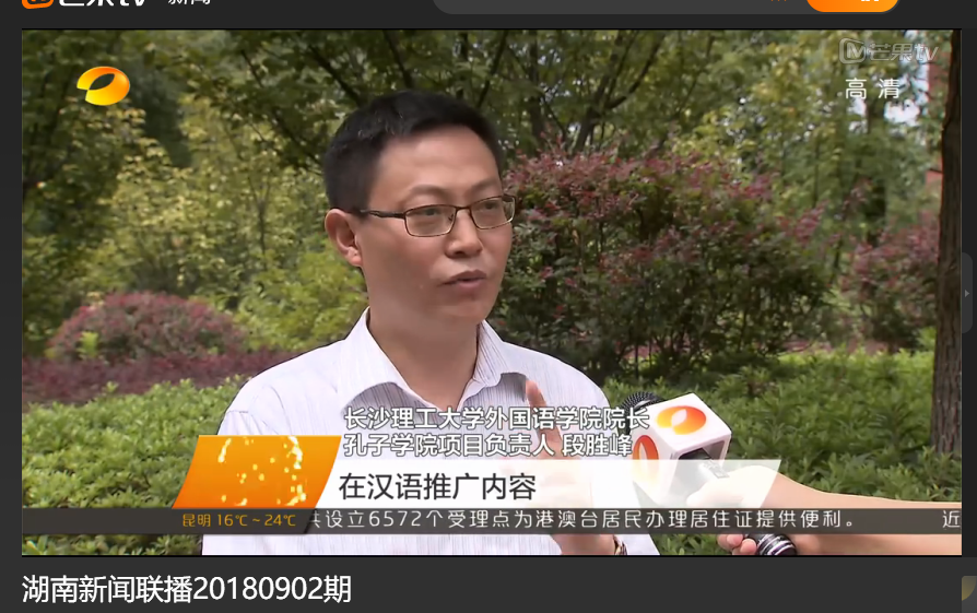 湖南卫视9月2日新闻联播3分50秒处,以《中国与非洲:人文相通 共赢发展》为题,对我校在非洲开展文化交流和传播的情况进行了报道。