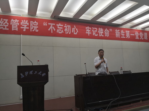 据悉,该党课是经管学院开设的“不忘初心、牢记使命”新生第一堂党课。两位主讲老师给第一批写了入党申请书的新生及时送来大学第一堂党课。通过对党员标准、党的奋斗历程、入党动机、入党程序、党员权利和义务以及习近平新时代中国特色社会主义思想等内容的讲授,提高入党申请人树牢“四个意识坚定四个自信坚决做到个维护”的政治觉悟,提醒入党申请人时刻听党话、感党恩、跟党走