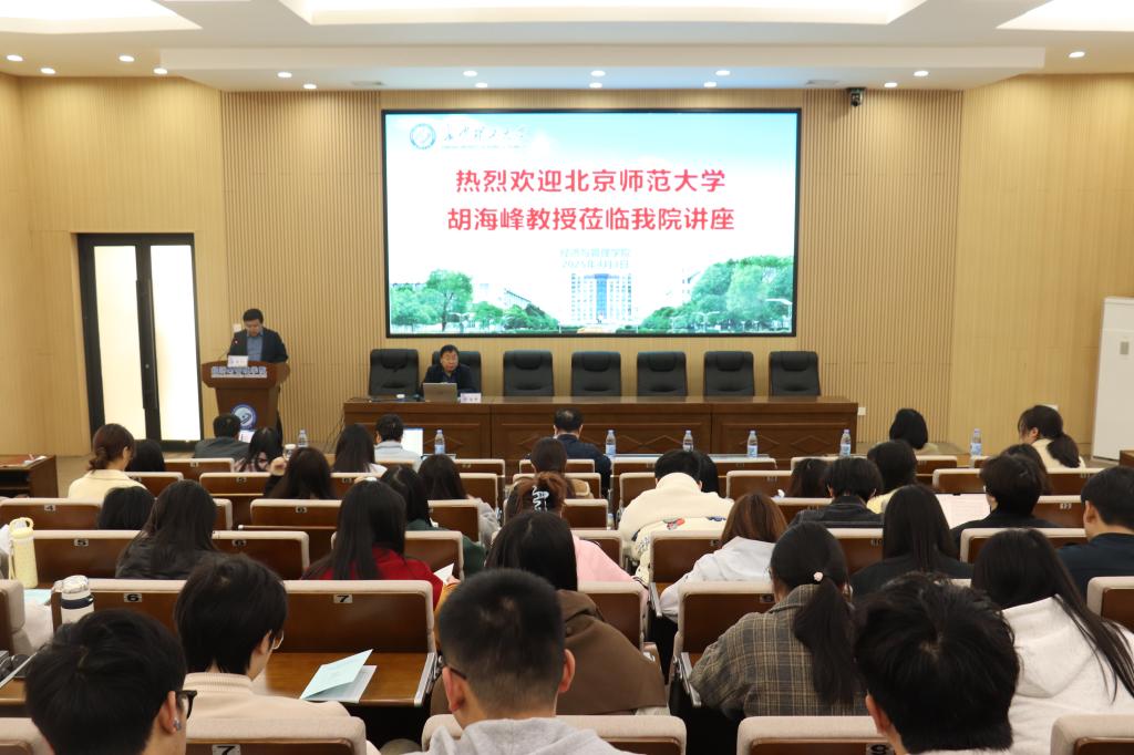 2025年4月3日上午,北京师范大学胡海峰教授应邀在经管大楼100报告厅主讲金岭学术大讲堂第55期(2025年第9期),主讲题目为“耐心资本:学术前沿和未来方向”。副院长王治、尹筑嘉出席,120余名师生参加了本次讲座,讲座由王治主持。