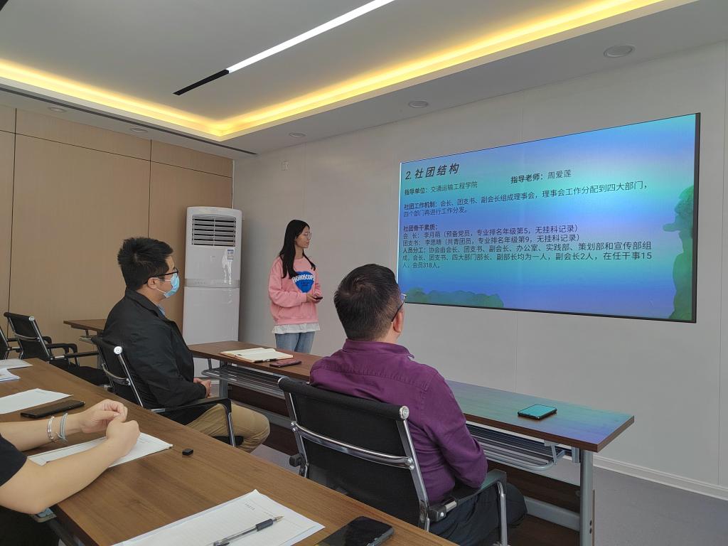会议伊始,由四大协会及阳光书屋负责人分别向两位老师介绍自己所辖社团的具体事务,如:社团人员组成,主要工作内容以及未来一年的工作计划。接着,彭笠结合了各协会、社团的具体情况以及工作中存在的困难,与每一位会长及负责人进行了沟通,并提出了解决办法。最后,涂道勇表示,在社团的发展过程中要不断提升骨干素质,理清工作机制与活动流程,加强四大协会、阳光书屋与学院及学社联的联系,同时要注重提高各项活动竞赛的组织质量,办出特色,办出水平,打造交通青年品牌,扩大学院影响力。