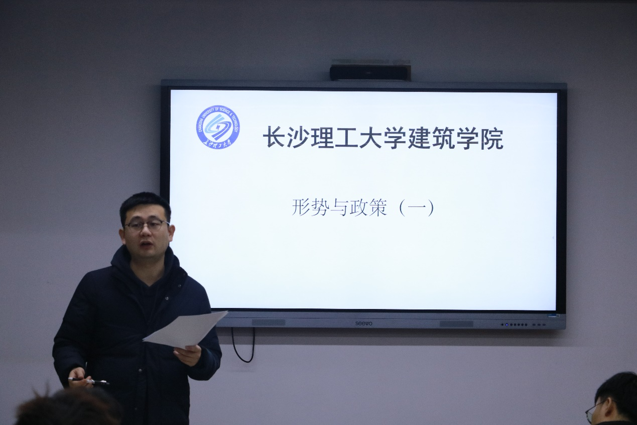 2022年11月29日下午2点,在国产a视频免费观看不卡建筑学院16教314开展了一次面向22级研究生的形势与政策课。辅导员王宇霖老师在课上详细介绍了本学期《形势与政策》课程的教学计划、总体要求和考核标准。