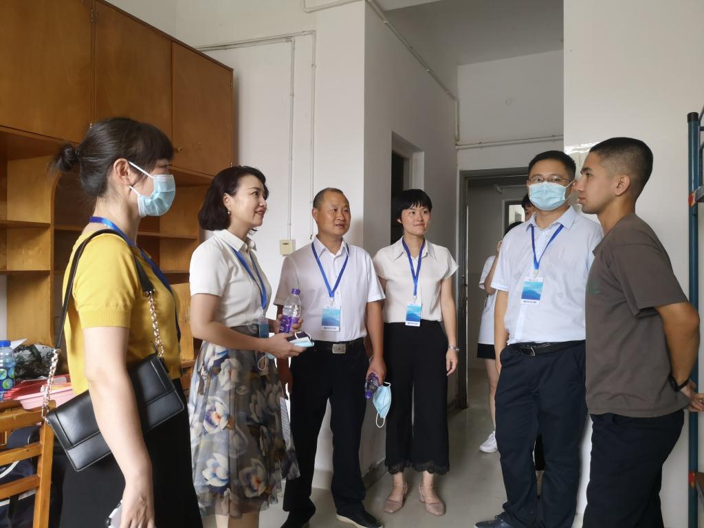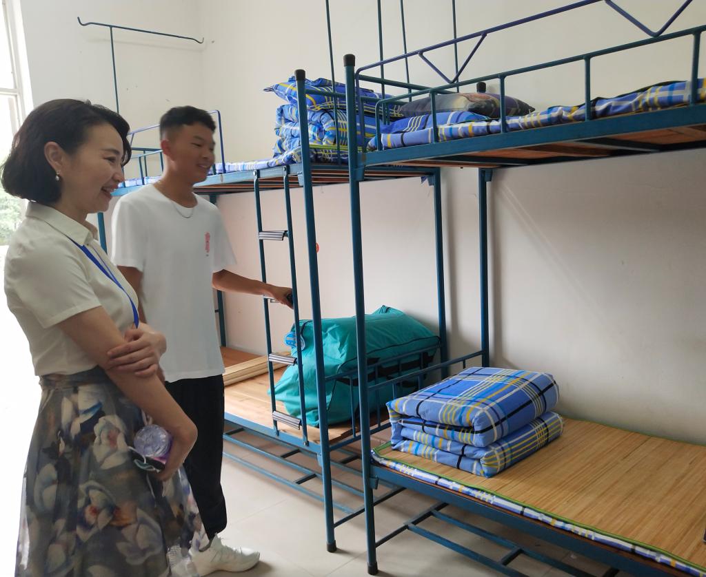 领导一行人分别走访了西二、西三、西九、西十一、外教楼等宿舍楼栋,一间一间寝室敲门问候,对新生的到来表示欢迎和祝贺,同学生们就宿舍环境适应、饮食习惯、兴趣爱好、人际交往等内容进行了亲切交流,并向学生手把手演示、教授了套被套、整理床铺的小技巧。