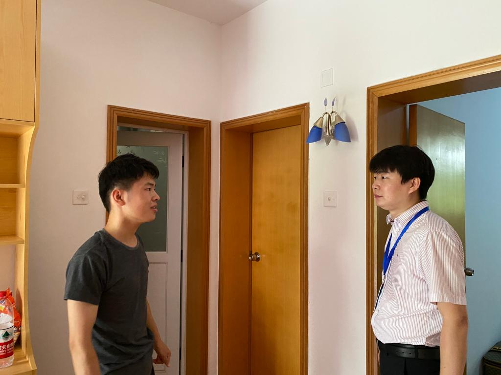 李毅和杜丘与寝室栋长及宿舍管理员积极进行交流,第一时间了解新生报到情况,共同努力为学生营造舒适温馨的学习生活环境。同时在走访中,李毅询问了新生的困难以及需求,关心关爱他们是否习惯新的生活环境,叮嘱同学们做好疫情常态化下的正确防护,注重自身安全保护并对2021级研究生给予了祝福与期待,希望他们努力投身科研中,真正做到学有所成。