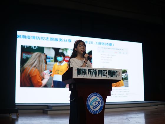 在暑期分享中,水利类20-5班朱嘉艺同学、给排水20-1班罗双雪同学、给排水20-3班张诗琪以及水电特岗20-1班谭茜同学分别从暑期“三下乡”社会实践、留校科研经历、防疫志愿服务经历和暑期跟岗实习进行了分享。朱嘉艺所在团队实地调研了韶山灌区的工程运行现状,深入基层走访调研,利用专业知识为韶山灌区“十四五”新时代征程献计献策,在一次次奔赴中收获成长。罗双雪分享到“科研并没有那么遥不可及,只要感兴趣,勇于尝试,积极思考,机会总是留有准备的人。”张诗琪在参与家乡抗疫志愿服务中深刻体会到“以生命赴使命,以挚爱护苍生”。谭茜则表示经过第一次跟岗实习,在学习实践中了解行业规范,收获本领,培养职业兴趣,水利特岗生也更加期待着能在基层水利岗位上发光发热。
