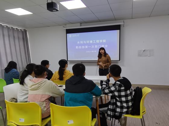 10月29日上午,水利学院在工科三号楼B437召开勤助部第一次工作例会,资助辅导员王正博老师出席,分管主席田沁阳和勤助部全体成员参会,会议由部长秦亮主持。