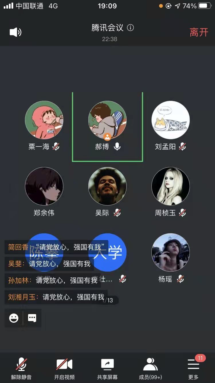 2021年9月29日,水利2019级、2020级、2021级研究生团支部组织开展了习近平总书记“七一”重要讲话专题学习活动和“请党放心,强国有我”主题团日活动。本次活动采取了线上腾讯会议的方式,本院同学都积极参与。