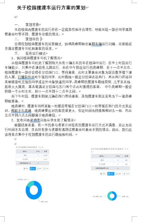 本次活动分为“校园摆渡车运营规划设计”与“校园车辆停放区域规划设计”两个部分。同学们通过对校园交通的观察,并结合日常出行的体验,最终以书面策划为主,视频,插画等元素为辅的形式,完成合理有序的最终规划设计成果。学生需要创建一个校车的调度系统,最后根据实际情况和校园交通状况制定相关的方案规划。同学们在参与设计的过程中,加深了解了对校园环境的了解,规范了安全绿色的出行意识,也提升了校园主人翁的意识。