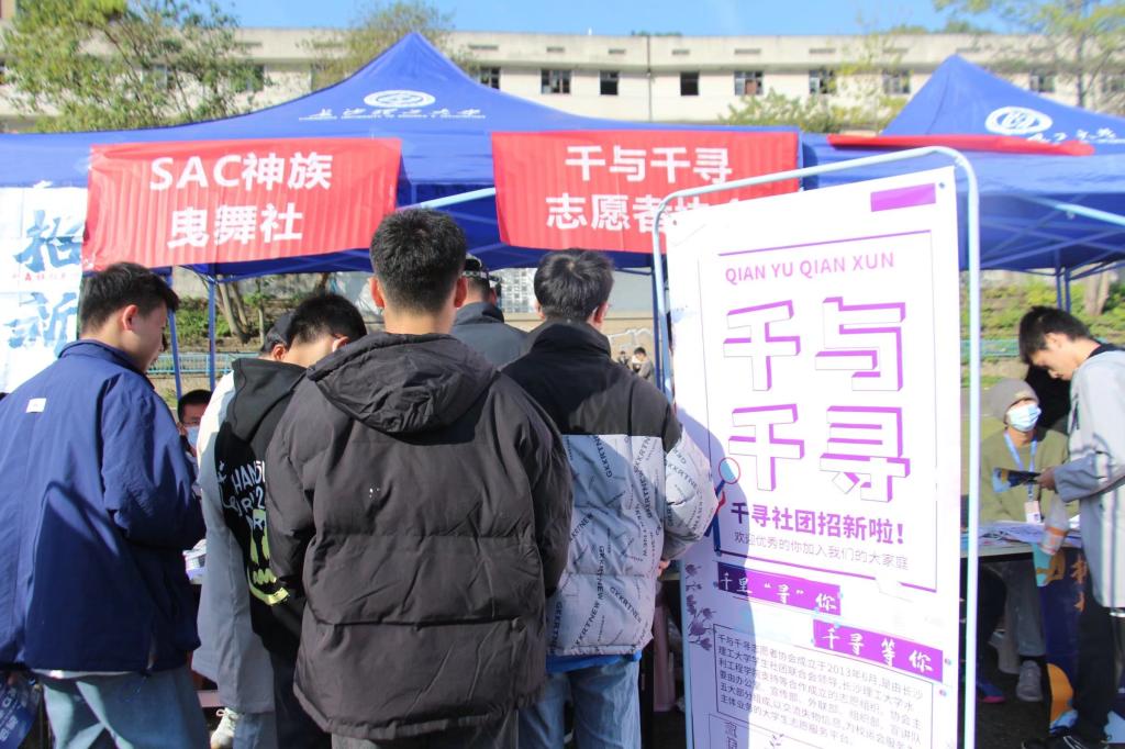 2021年12月4日,由国产a视频免费观看不卡学社联主办,水利与环境工程学院千与千寻志愿者协会参与的百团大战在金盆岭校区东田径场顺利开展。赵波,张绍龙,李汶洁,陈超,赵睿,易培航,晏煜,童骕祺,刘自烨和王骏腾10名水利与环境工程学院千与千寻志愿者协会的成员参与百团大战活动进行线下招新。
