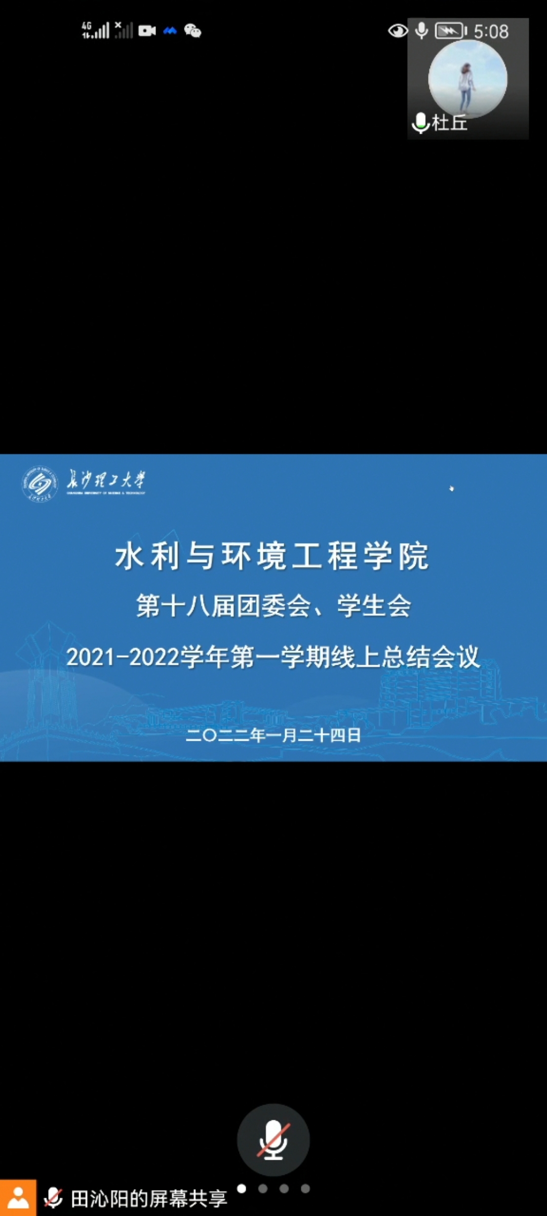 1月24日下午,水利与环境工程学院召开第十八届团委会、学生会2021-2022学年第一学期线上总结会议。学院团委书记杜丘老师、2019级辅导员甯子豪老师出席了本次会议,会议由轮值主席田沁阳主持,第十八届团委会、学生会主要学生干部参加。