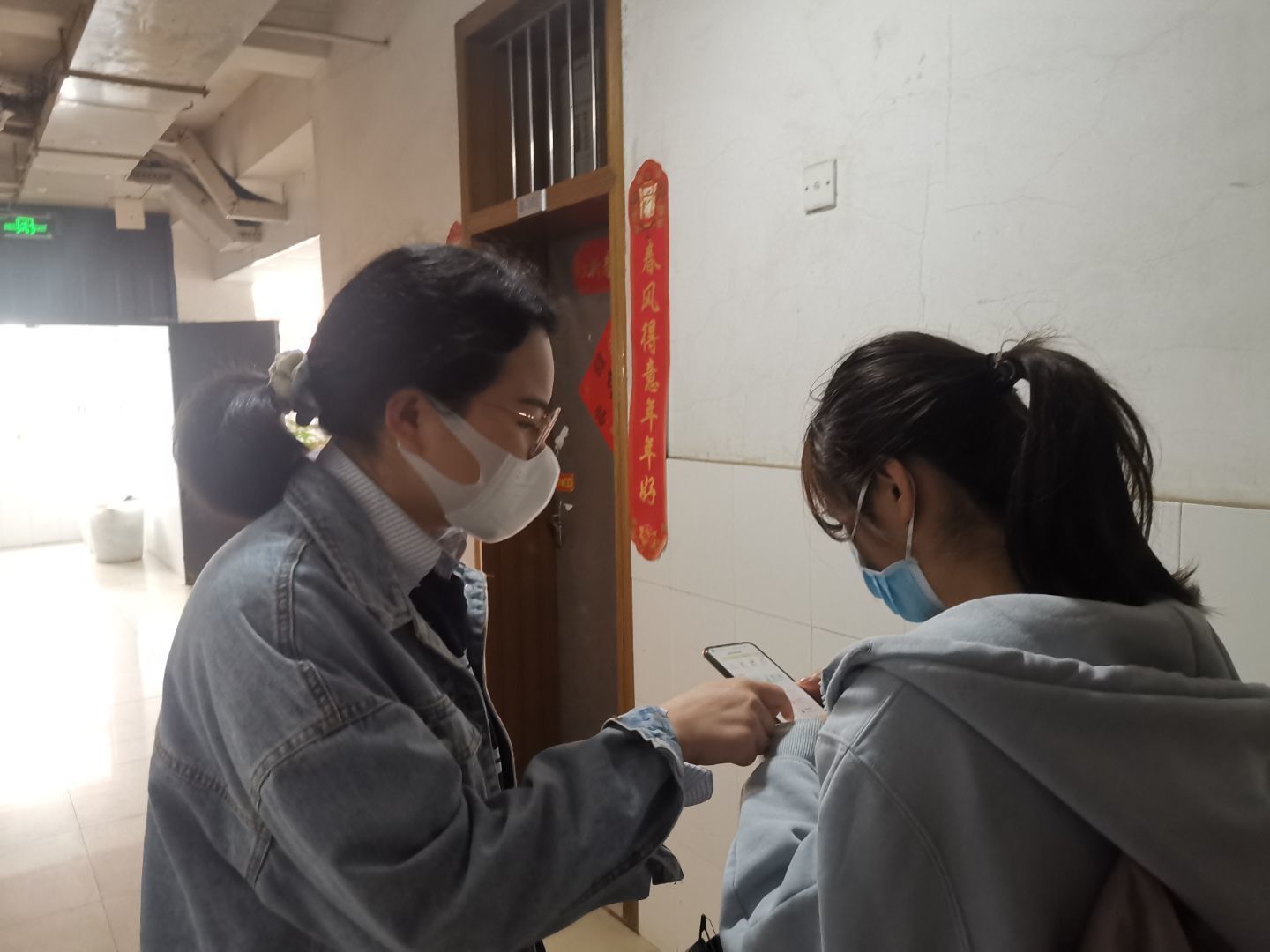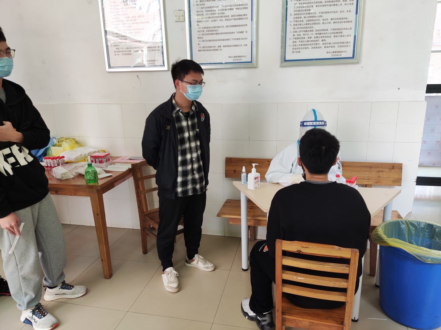 从3月29日上午九点开始,志愿者们在协助同学扫码、维持秩序、人员引导等工作中充当了重要角色。他们和同学们进行了亲切又耐心的交流,通过健康码了解同学们的疫情防控情况与最近接种疫苗情况,关怀同学们的身心健康;维持秩序时,提醒同学们戴好口罩,还向同学们传达了学校疫情防控的相关规定;同时志愿者们还对学生进、出楼栋戴口罩情况进行督促,并提醒同学们做好每日体温监测。