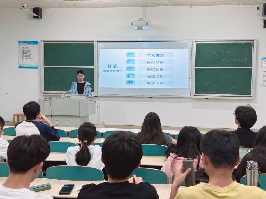 4月14日晚上19:30,水利学院在云塘校区综教A205、A206教室举办第四十五期“水润讲坛”,主题为“保研攻略分享”。本次讲坛特别邀请了成功保研至重庆大学的舒文锋和保研至中山大学的邱艺鸣作为主讲嘉宾,为50余名同学分享了他们的宝贵经验。