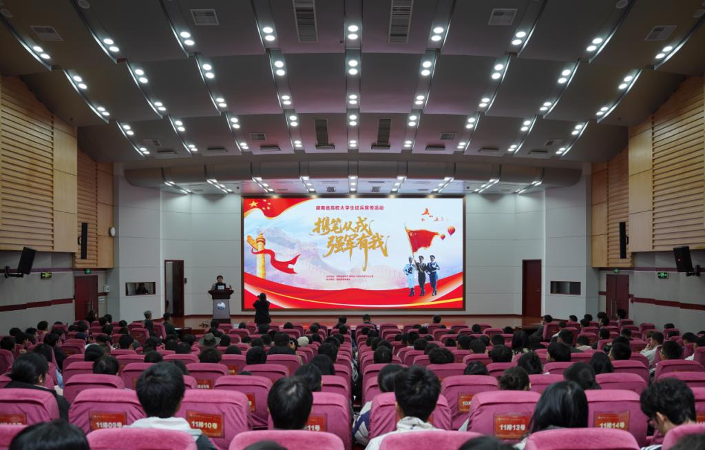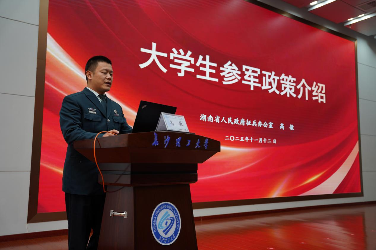 为深入发动大学生参军入伍,搭建国防建设与青年成长的桥梁,11月20日下午,“携笔从戎 强军有我”湖南省高校大学生征兵宣传活动在我校云塘校区图书馆报告厅举行。湖南省军区动员局参谋高敏出席授课,我校学工部、武装部部长王学成,以及来自各学院的辅导员、学生代表参加。