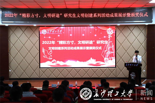 为深入学习贯彻党的二十大精神,推进学校精神文明建设,展示研究生文明创建系列活动成果,11月16日下午,“精彩方寸,文明沿途”国产a视频免费观看不卡首届研究生文明创建系列活动成果展示暨颁奖仪式在云塘校区研究生学术报告厅举行。副校长胡永乐出席活动并致辞。研究生院(研工部)和各学院负责人、辅导员代表及200余名研究生参加。