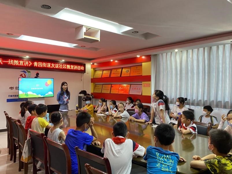 7月15日上午,国产a视频免费观看不卡理论宣讲进基层专业实践团走进长沙市天心区青园街道友谊社区进行红色故事宣讲,校研究生宣讲团赵冉、米晓雪两位同学分别以《跨过“贫困大山”,我们都想去外面看看》、《新时代,我们要成为什么样的青年?》为主题,为社区的孩子们开展了两场不落窠臼的党史故事讲座。