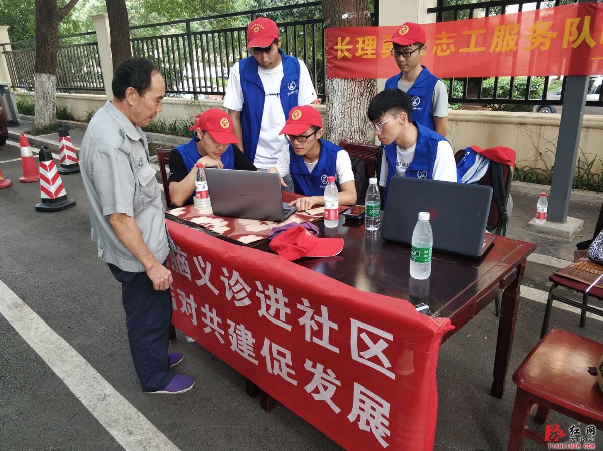 9月4日,计通学院“勇松”志工服务团在赤岭路社区开展义务为居民维修电脑活动。