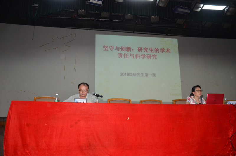 2016年9月7日晚上,院长陈银娥教授在金盆岭五教大礼堂以“坚守与创新:研究生的学术责任与科学研究”为主题,给2016级全体研究生讲授新生第一课。本次活动由学院副院长彭新宇主持。